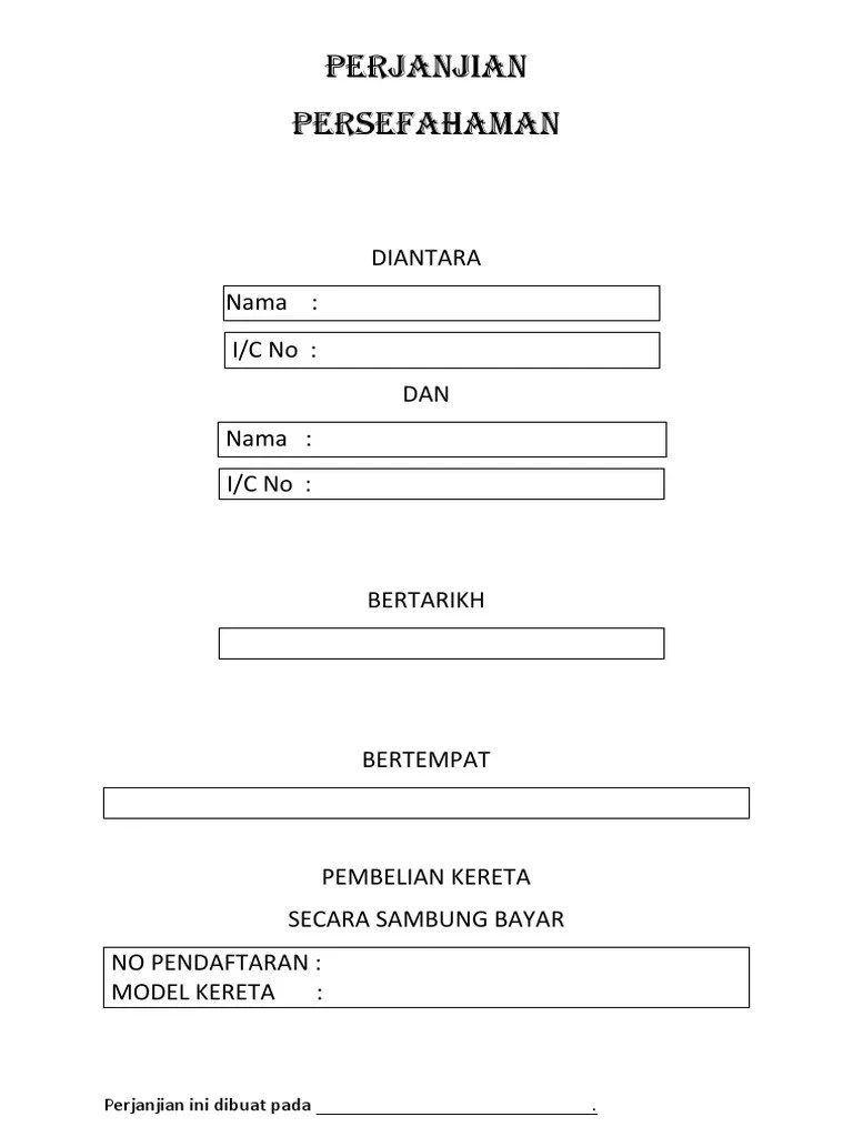 Contoh surat perjanjian sambung bayar loan kereta rujukan niaga.